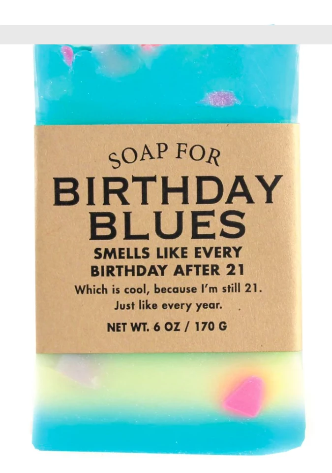 Sad Birthday Cake Scented; approx 6 oz soap. All Whiskey River Soaps are handmade and no two bars are identical.
