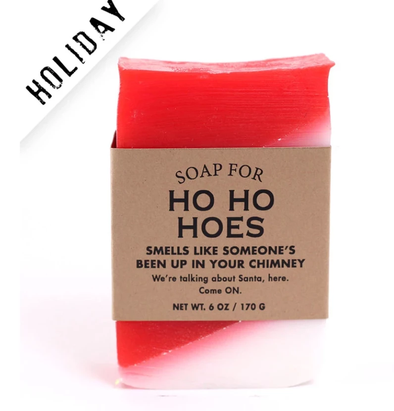 You know the best thing about the holidays? All the ho-ho-hoeing going on. It’s why they call it the most magical time of the year. And when I saw this soap, I immediately thought of you. Who wouldn’t? When it comes to hoeing, you’re up there with the best of them. That’s why everyone invites you to parties. (Oh, and hey. I wasn’t calling you names or anything. I’m just jolly like that.)
