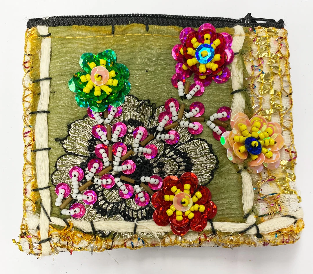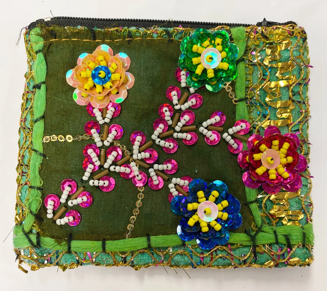 These are lovely little coin purses. Hand adorned with ribbons, sequins and beads! Each one has unique styling too. Perfect for all ages!