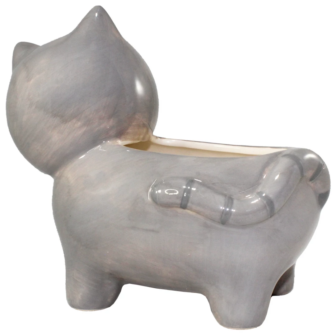 This little kitty is waiting for your favorite plant! Hand painted ceramic craft.